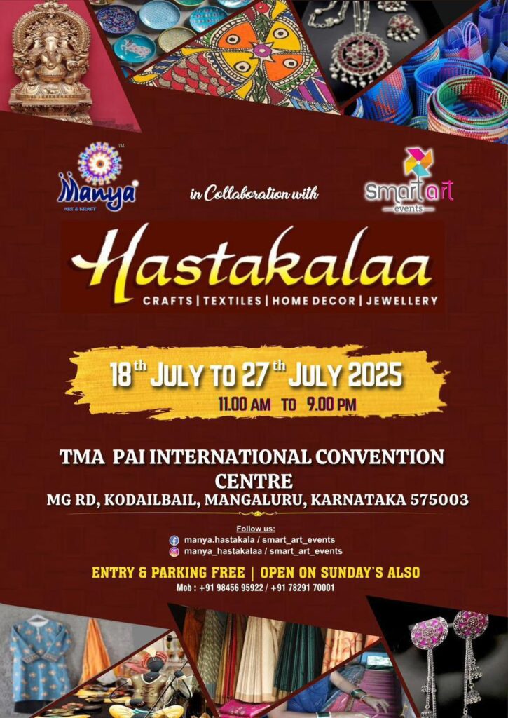 A vibrant showcase of India’s rich heritage and craftsmanship, the “Hastakalaa” exhibition, is set to return to the city from July 18 to July 27, 2025, at the TMA Pai International Convention Centre on MG Road. Organized by Manya Art & Kraft in collaboration with Smart Art Events, this will be the second edition of the event of this year.